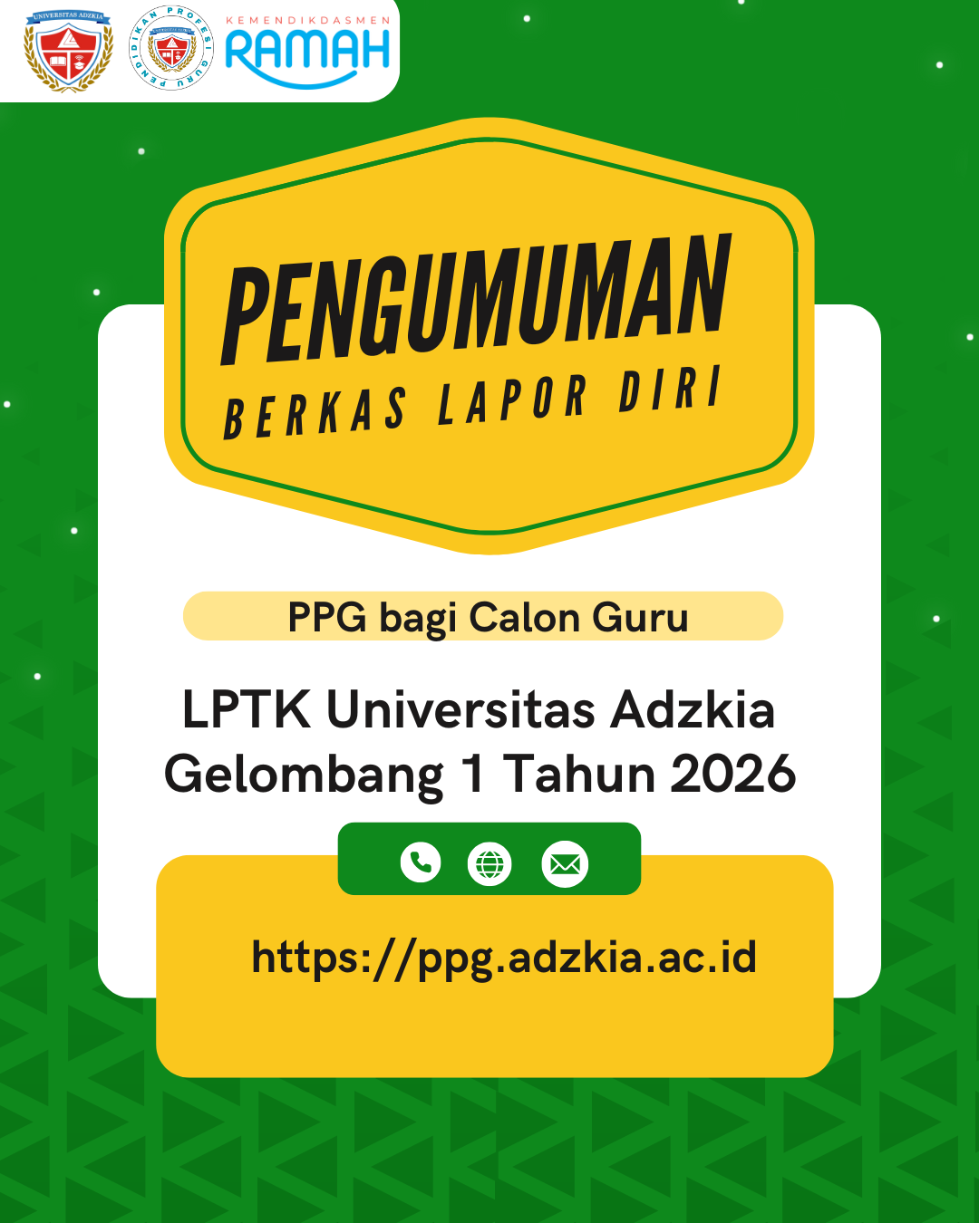 kami informasikan kepada seluruh mahasiswa PPG Calon Guru Gelombang 1 Tahun 2026 Universitas Adzkia agar melakukan LAPOR DIRI dengan ketentuan sebagai berikut: